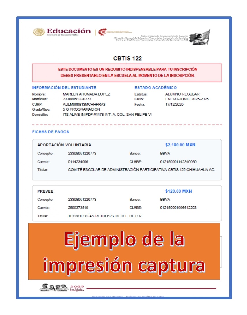 Reinscripciones CBTis 122 · Febrero–Julio 2026