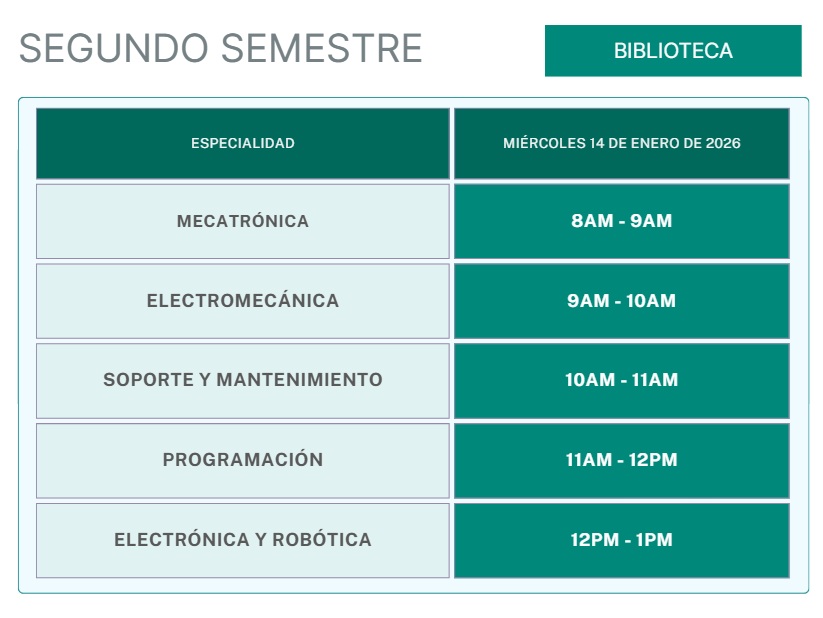 Biblioteca, de 8:00 a 14:00.